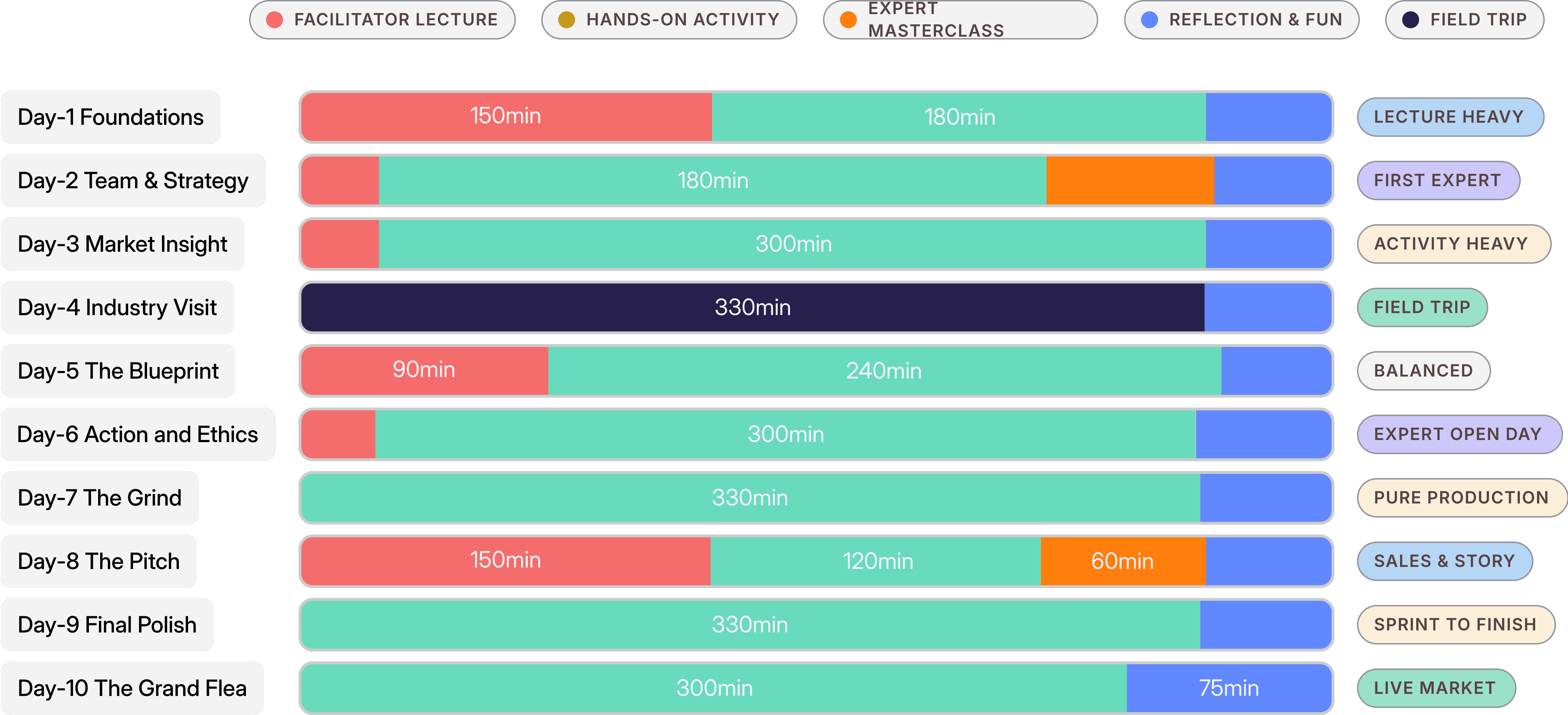 An immersive 10-day offline program in Mumbai, where students learn about business by actually building one.